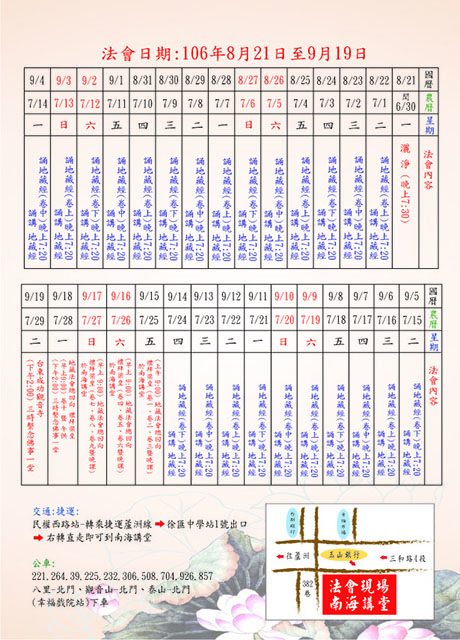 | 106.07.25 | 106.08.21日 法會活動:孟蘭盆孝親報恩地藏法會 圓滿 | |